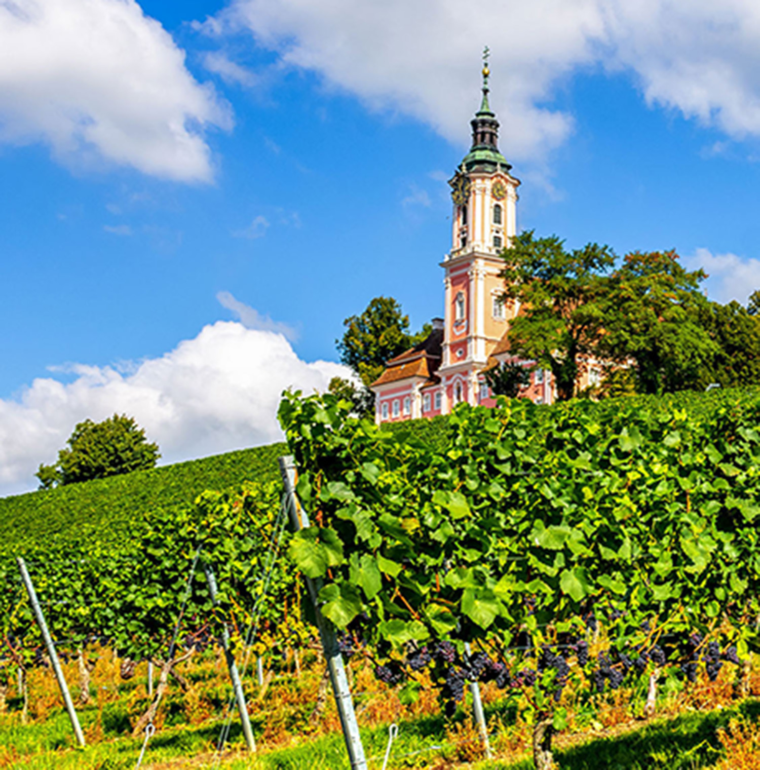 The CAR & TRAKTOR MUSEUM is located near Uhldingen, between Überlingen and Meersburg. From Gebhardsweiler you have a beautiful view of Lake Constance and the pilgrimage church of Birnau.
