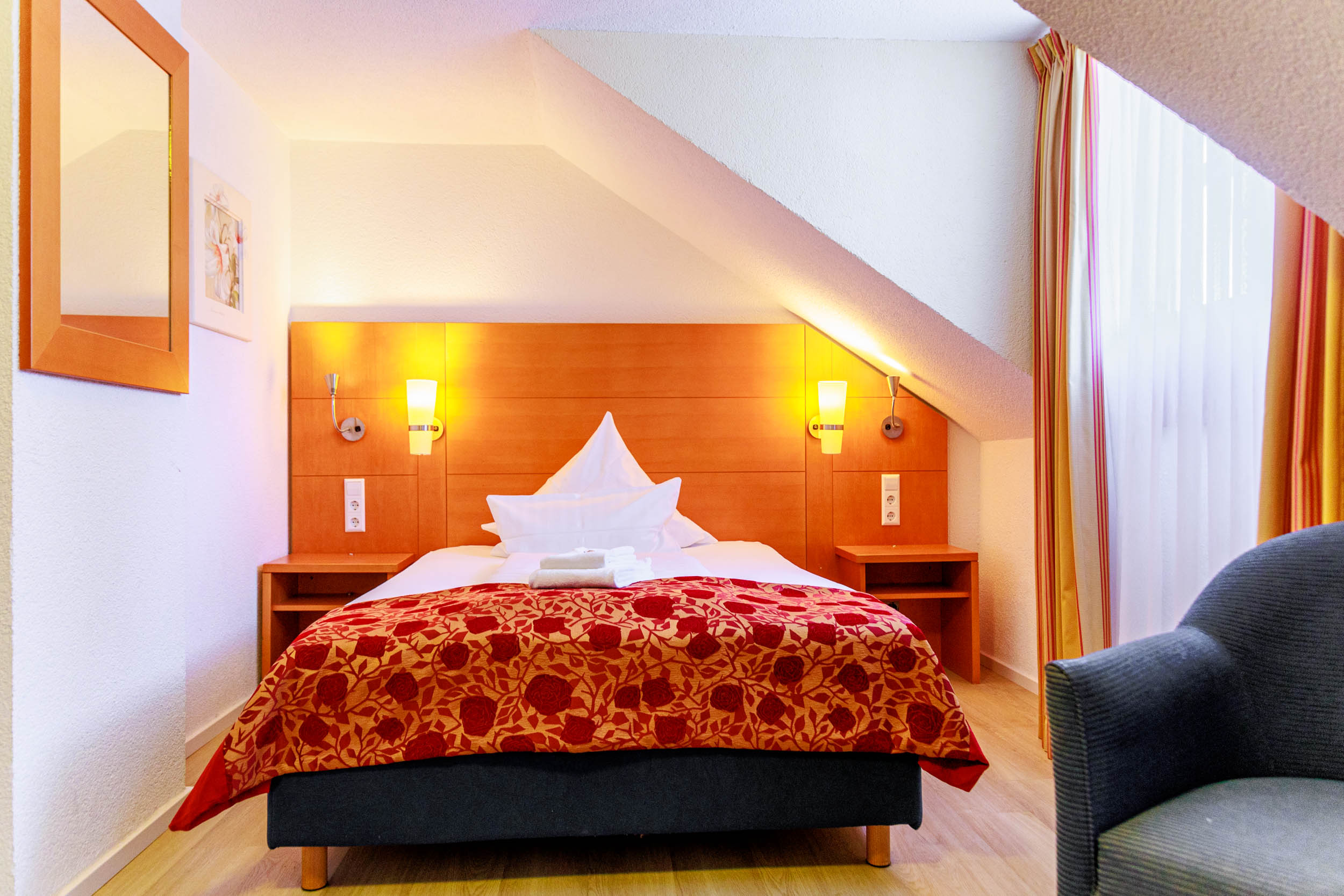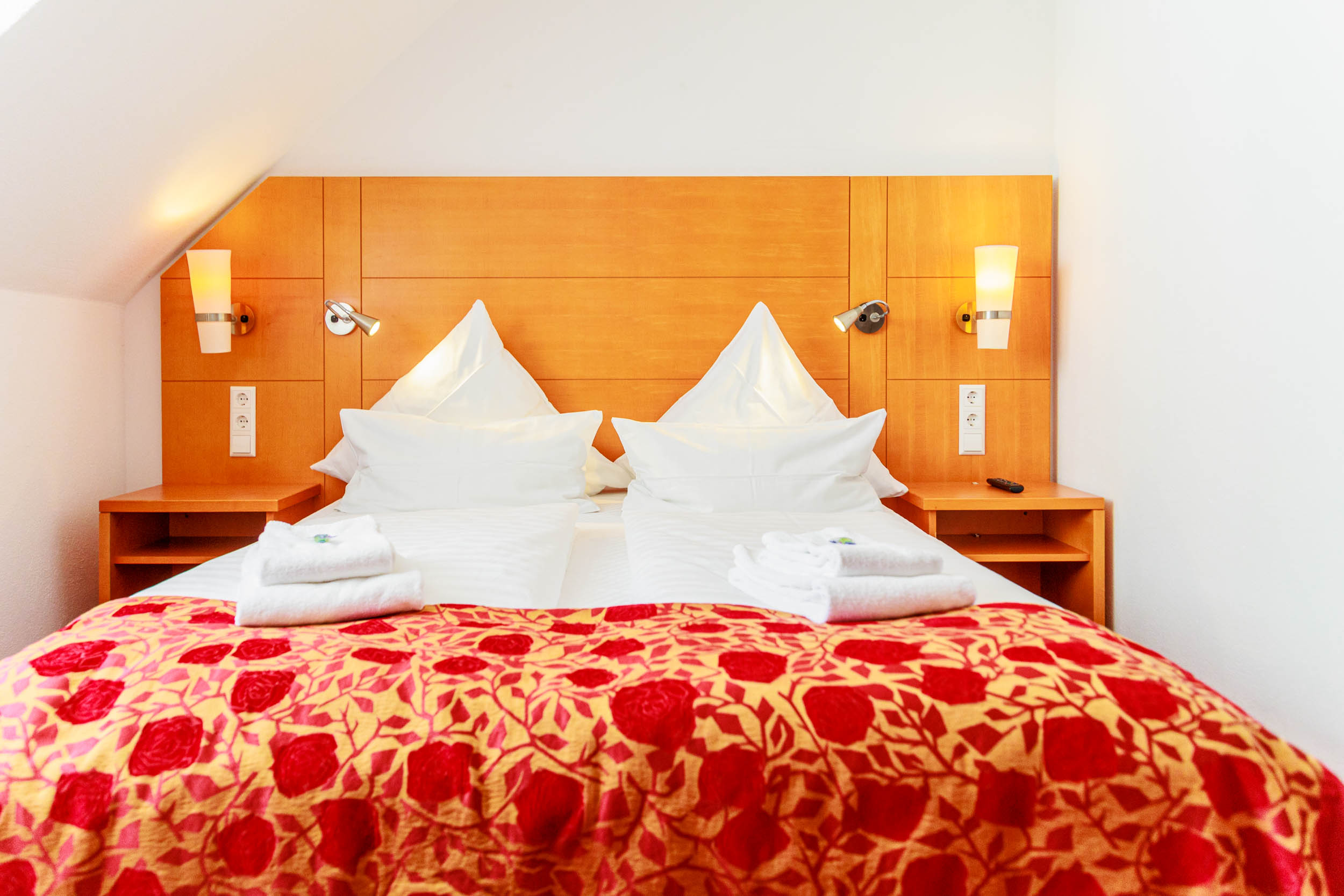 Klassisch eingerichtet, mit kleinen Bädern sind unsere mit 160x200cm französischen Doppelbetten ausgestatteten Economy-Zimmer die kostengünstigste Kategorie in unserem Haus. Perfekt für kurze Aufenthalte. Balkon möglich.
