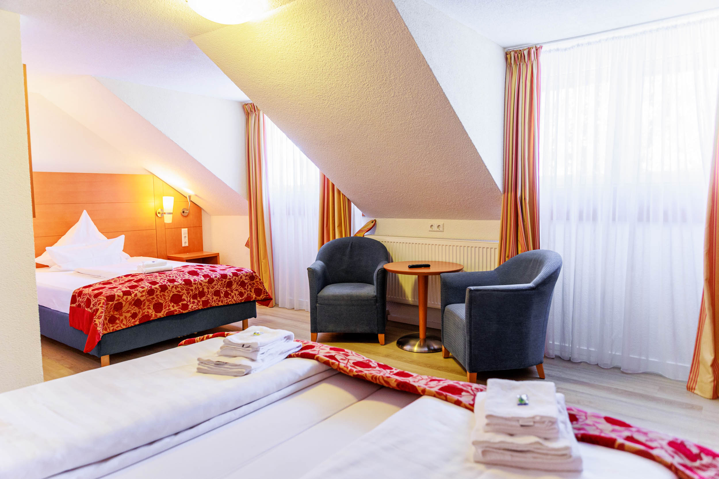 Modern, wie auch Klassisch eingerichtet, geräumig und mit großen Bädern ausgestattet bieten unsere Comfort-Zimmer mit ihren 180x200cm Betten die beste Option auch für längere Aufenthalte. Unsere Comfort-Zimmer sind auch begrenzt als Zwei-Bett Zimmer erhältlich. Zustell- und Babybetten können auch zur Verfügung gestellt werden. Balkon möglich.