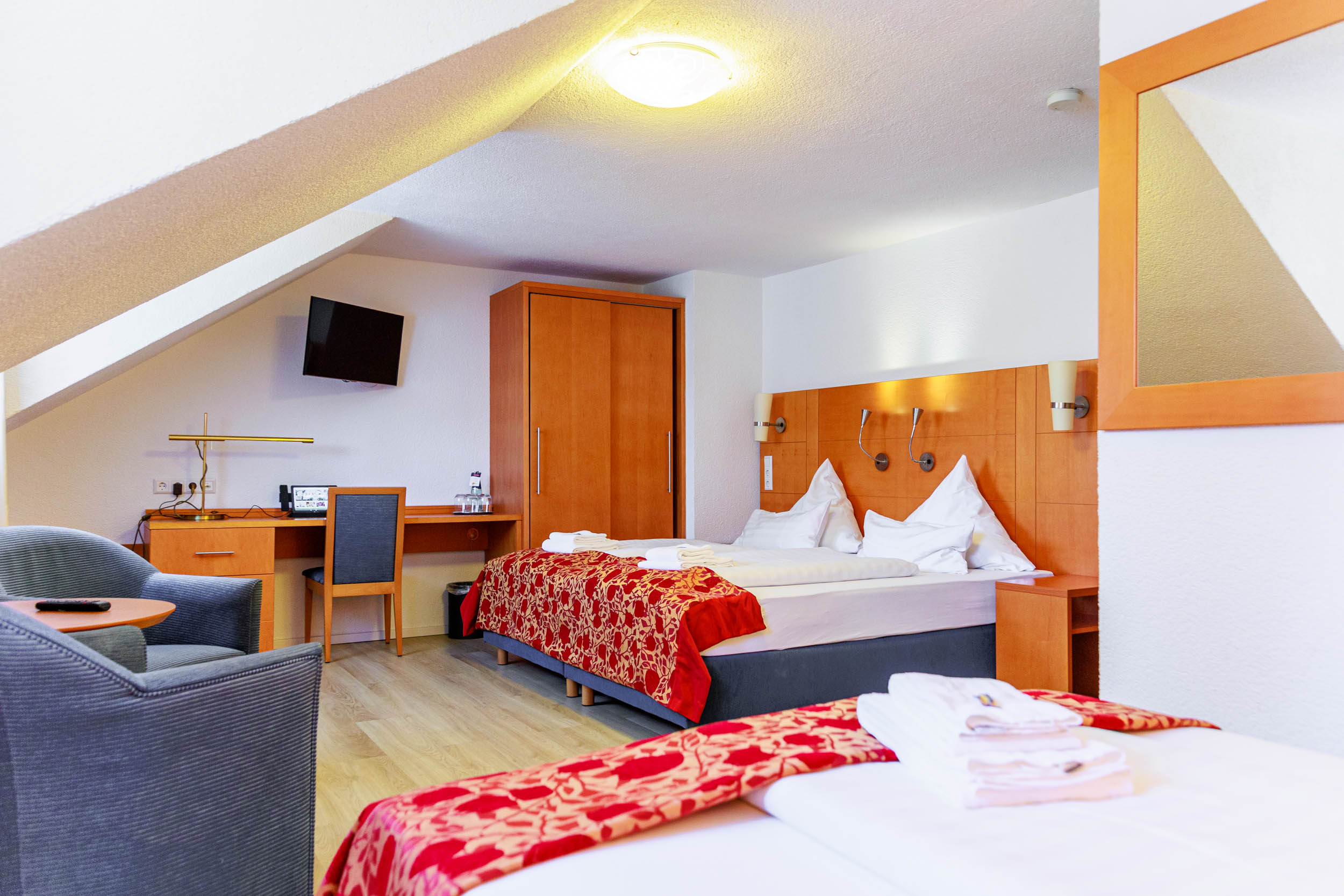 Modern eingerichtet, mit 120x200cm Betten mittlerer härte, ist diese Zimmer-Kategorie wunderbar für Business- sowie kurzen Aufenthalten ausgestattet. Balkon möglich.